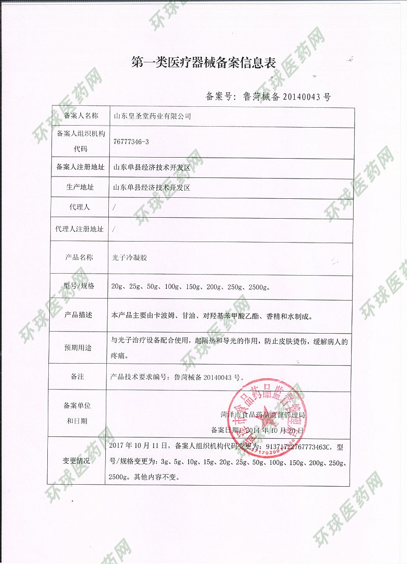 批準(zhǔn)文號(hào): 魯菏械備20140043號(hào) 【驗(yàn)證真?zhèn)?/a>】