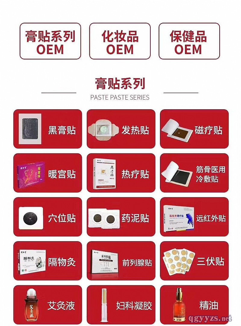| 補充說明 | 承接【械字號、妝字號、消字號、保健食品、日用品】貼膏貼劑、粉包、足浴包、泡浴包、足貼、穴位貼、理療貼、磁療貼、醫(yī)用冷敷貼、乳膏、疼痛乳膏、液體、噴劑、艾灸液、凝膠,面膜、固體飲料、壓片糖果等**劑型產(chǎn)品,可以貼牌代加工 ,誠招全國各地代理商,提供商標注冊、專利申請、版權申請等,合作共贏一條龍服務 |