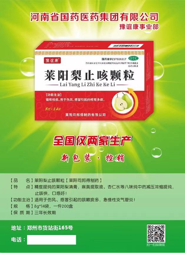 | 補(bǔ)充說明 | 通用名稱:萊陽梨止咳顆粒 |