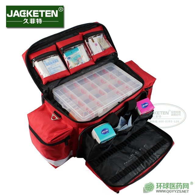 | 補(bǔ)充說(shuō)明 | 久菲特急救包JKT-013包體顏色為紅色,采用環(huán)保型1680D雙股牛津面料,具備防濺水防塵抗潮功能;攜帶方便,可單肩可手提;包體內(nèi)部設(shè)計(jì)了三組加厚可拆卸隔層,供氧器隔層,透明獨(dú)立內(nèi)袋三個(gè);外部?jī)蓚?cè)和前面各設(shè)有兩個(gè)口袋,可裝輸液器具,診斷器具等,另外可以自備四十多種急救用安瓿針劑和常用的口服藥,織有**反光條;三組雙向拉鏈,四組單向拉鏈,底部有水水防潮墊和腳釘;包體印有全球通用的《急救之星》標(biāo)識(shí),帶有久菲特商標(biāo)LOGO! 醫(yī)用出診型急救配置清單 序號(hào) 產(chǎn)品名稱(chēng) 規(guī)格與型號(hào) 數(shù)量 1 醫(yī)用供氧器 2升單表鋼瓶 1套 2 復(fù)蘇氣囊 PVC成人小型 1套 3 手動(dòng)吸引器 R型 1套 4 血壓計(jì) 魚(yú)躍表式 1臺(tái) 5 聽(tīng)診器 魚(yú)躍 1套 6 壓舌板 金屬 1把 7 開(kāi)口器 丁字式 1把 8 舌鉗 17cm 1把 9 止血鉗 12.5cm 1把 10 體溫表 ** 2支 11 叩診槌 大圓頭 1把 12 醫(yī)用手電筒 子彈頭筆式 1把 13 醫(yī)用剪刀 12.5cm 1把 14 敷料鑷子 14cm 1把 15 頸部固定器 高分子材料 1個(gè) 16 卷式夾板 90*11cm 2個(gè) 17 透氣膠帶 1.25*900cm 2卷 18 醫(yī)用紗布繃帶 2卷 19 三角繃帶 96*96*135cm 2包 20 壓縮紗布?jí)K 50*80cm 2包 21 醫(yī)用紗布片(塊) 7.5*7.5cm 2包 22 滅菌敷料 10*10cm 2片 23 醫(yī)用紗網(wǎng)帽 一次性 2個(gè) 24 酒精棉球 含75%乙醇 1瓶 25 碘藥棉片 5*5cm 20片 26 清潔濕巾 3片 27 檢查手套 一次性 2雙 28 醫(yī)用口罩 一次性 2個(gè) 29 止血帶 乳膠 1條 30 急救手冊(cè) 1本 31 急救包 52*30*42cm 1個(gè) 溫馨提示:此款急救包及所配醫(yī)療用品為專(zhuān)業(yè)急救所用,120救護(hù)車(chē)出診急救用的特別多,不適合家庭個(gè)人購(gòu)買(mǎi),謝謝! |