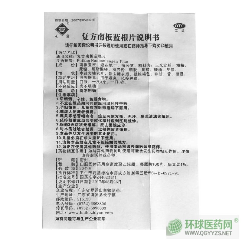 | 品牌名稱 | 復方南板藍根片 |