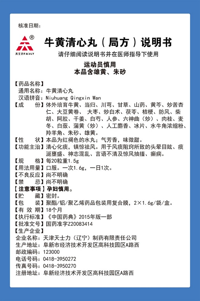 | 主要成分 | 體培牛黃、當歸、川芎、甘草、山藥、黃芩、炒苦杏仁、大豆黃卷、大棗、炒白術(shù)、茯苓、桔梗、防風、柴胡、阿膠、干姜、白芍、人參、六神曲(炒)、肉桂、麥冬、白蘞、蒲黃(炒)、人工麝香、冰片、水牛角濃縮粉、羚羊角等29味。 |