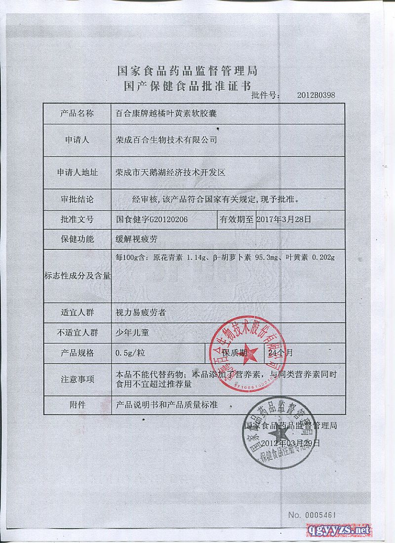 批準(zhǔn)文號: 國食健字G20120206 【驗(yàn)證真?zhèn)?/a>】
