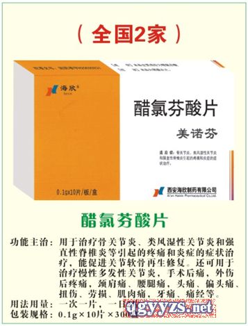 用于治療骨關(guān)節(jié)炎、類(lèi)風(fēng)濕性關(guān)節(jié)炎和強(qiáng)直性脊椎炎等引起的疼痛和炎癥的癥狀治療,能促進(jìn)關(guān)節(jié)軟骨再生修復(fù)。還可用于治療慢性多發(fā)性關(guān)節(jié)炎,手術(shù)后痛,外傷后疼痛,頸肩痛、腰腿痛,頭痛、偏頭痛、扭傷、勞損、肌肉痛,牙痛、痛經(jīng)等。用法用量:一次一片,一日2片 |