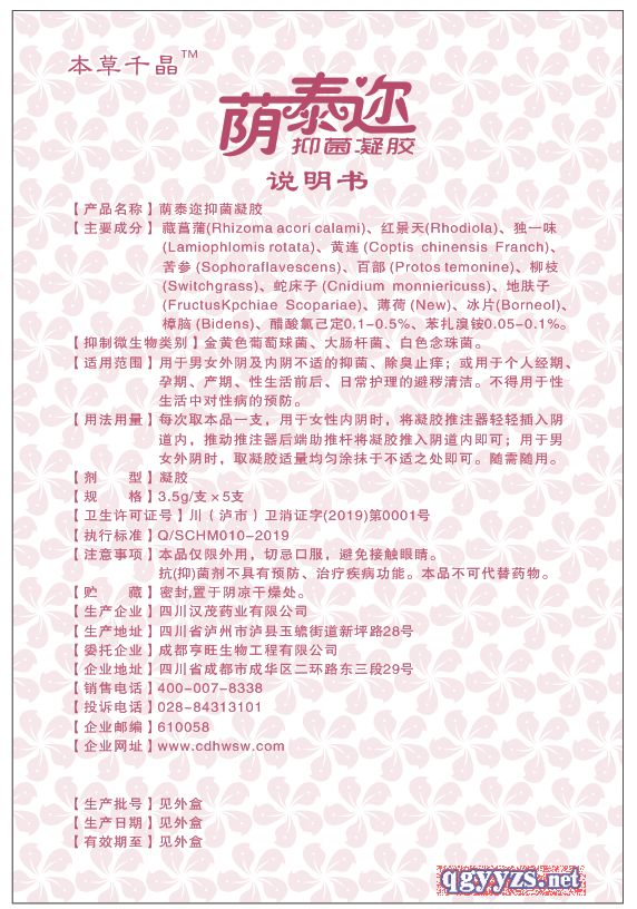 | 產(chǎn)品名稱 | 蔭泰邇婦科抑菌凝膠 |