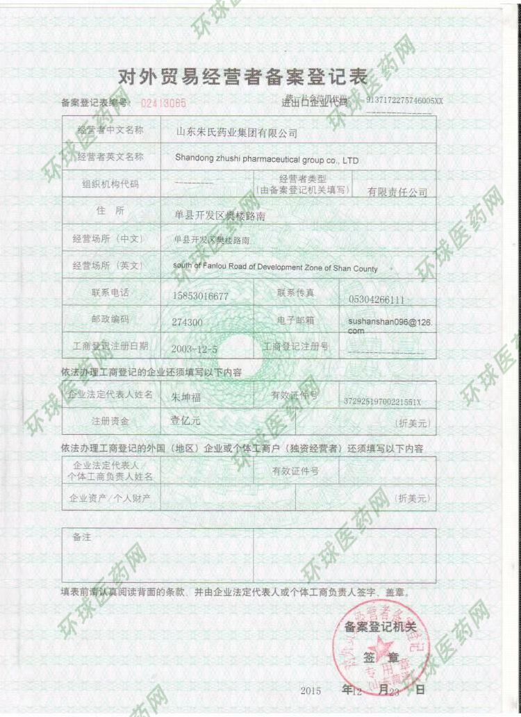 生產(chǎn)企業(yè): 山東朱氏藥業(yè)集團(tuán)有限公司