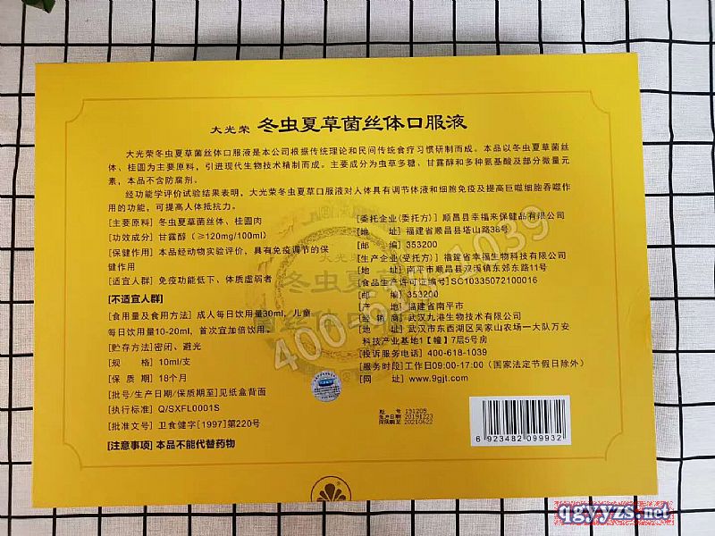 產(chǎn)品名稱: 冬蟲夏草菌絲體口服液