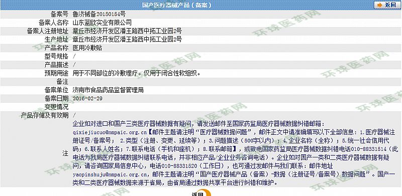 | 其它說明 | 山東藍歐實業(yè)有限公司成立于2007年,注冊資本壹仟萬元。是一家集醫(yī)療研發(fā)、生產(chǎn)、銷售和醫(yī)療服務(wù)于一體的高科技企業(yè),專業(yè)研發(fā)生產(chǎn)納米生物醫(yī)藥高科技產(chǎn)品,擁有一支專家組成的聯(lián)合科研隊伍,是一支高素質(zhì)、高追求,富有朝氣蓬勃的精英團隊。辦公面積500平方米,廠房面積10000平方米,建設(shè)100000級無菌凈化車間2000平方米,主要合作于全國各醫(yī)療機構(gòu)、百強連鎖、醫(yī)藥公司等。 |