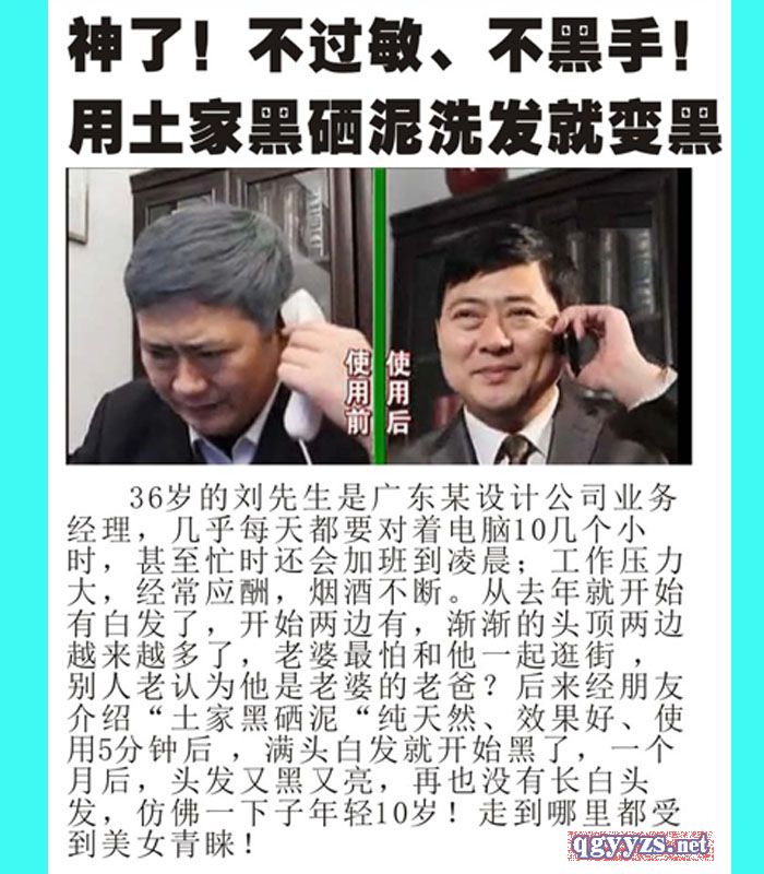 | 使用方法 | 將頭發(fā)打濕后,按說明書使用本品洗頭,10分鐘后用水沖洗衣干凈,白頭發(fā)就都變黑了。 |