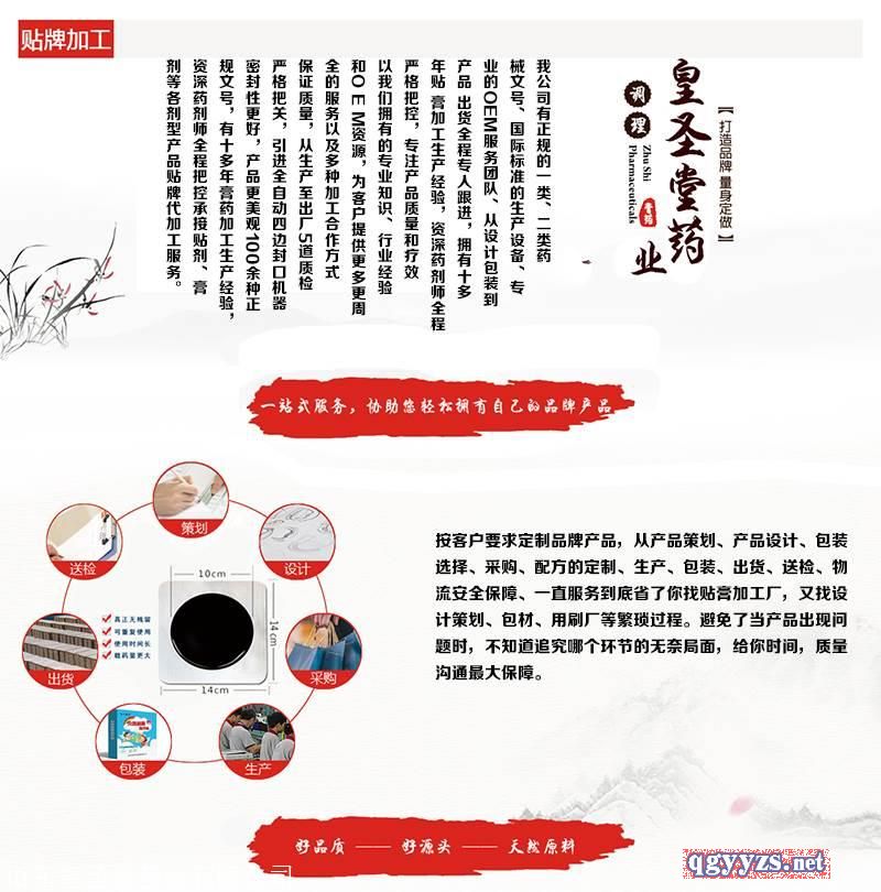 [主營產(chǎn)品]:膏藥貼劑,藥水,藥膏,藥粉,黑膏藥,藥貼牌代加工,水 乳 霜 精華美容護膚產(chǎn)品oem/odm代加工 更多>