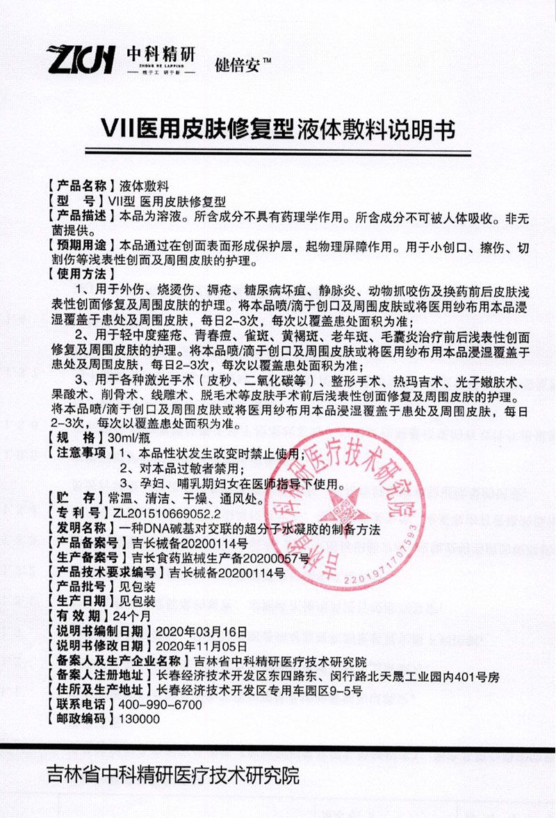 | 產(chǎn)品名稱 | 醫(yī)用皮膚修復(fù)型液體敷料 |
