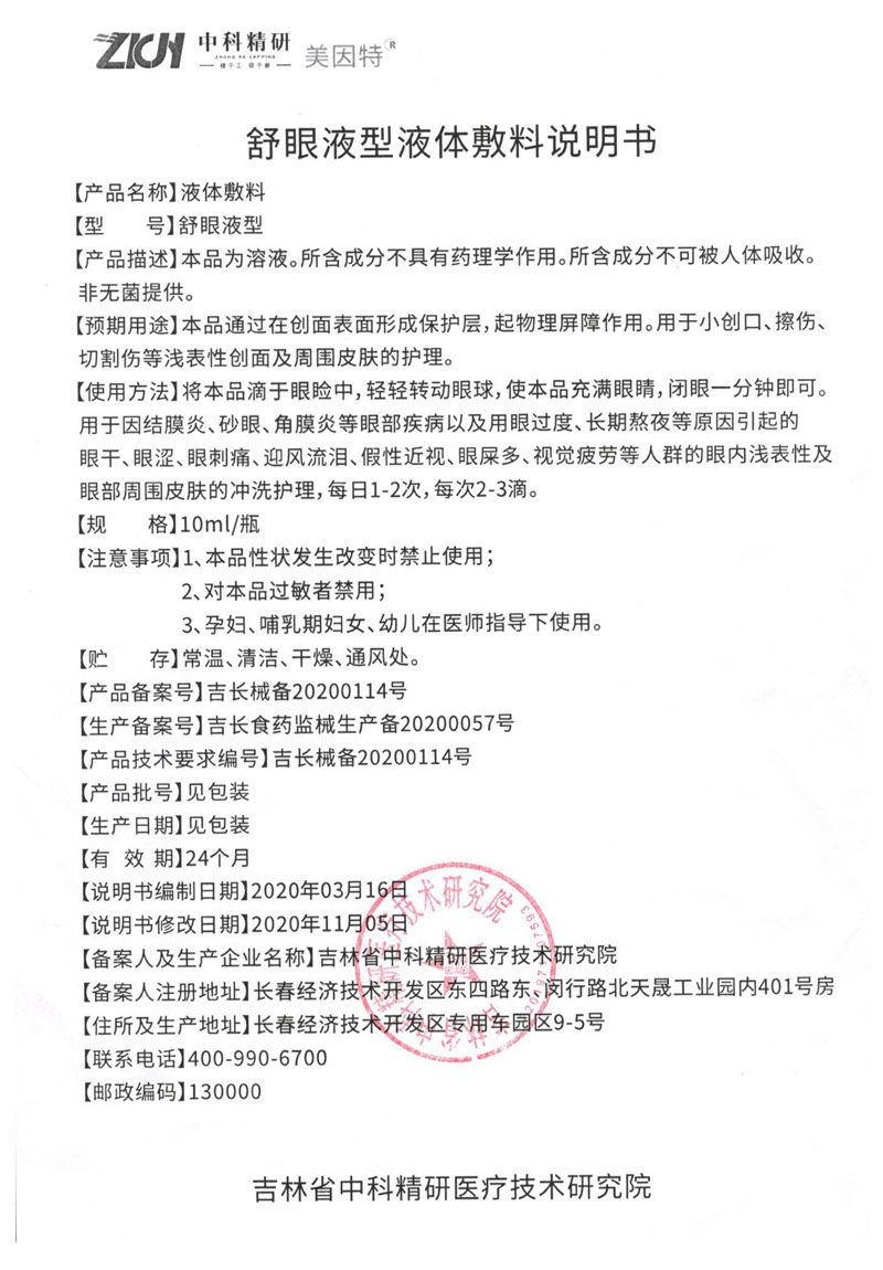 | 產(chǎn)品名稱 | 舒眼型液體敷料 |