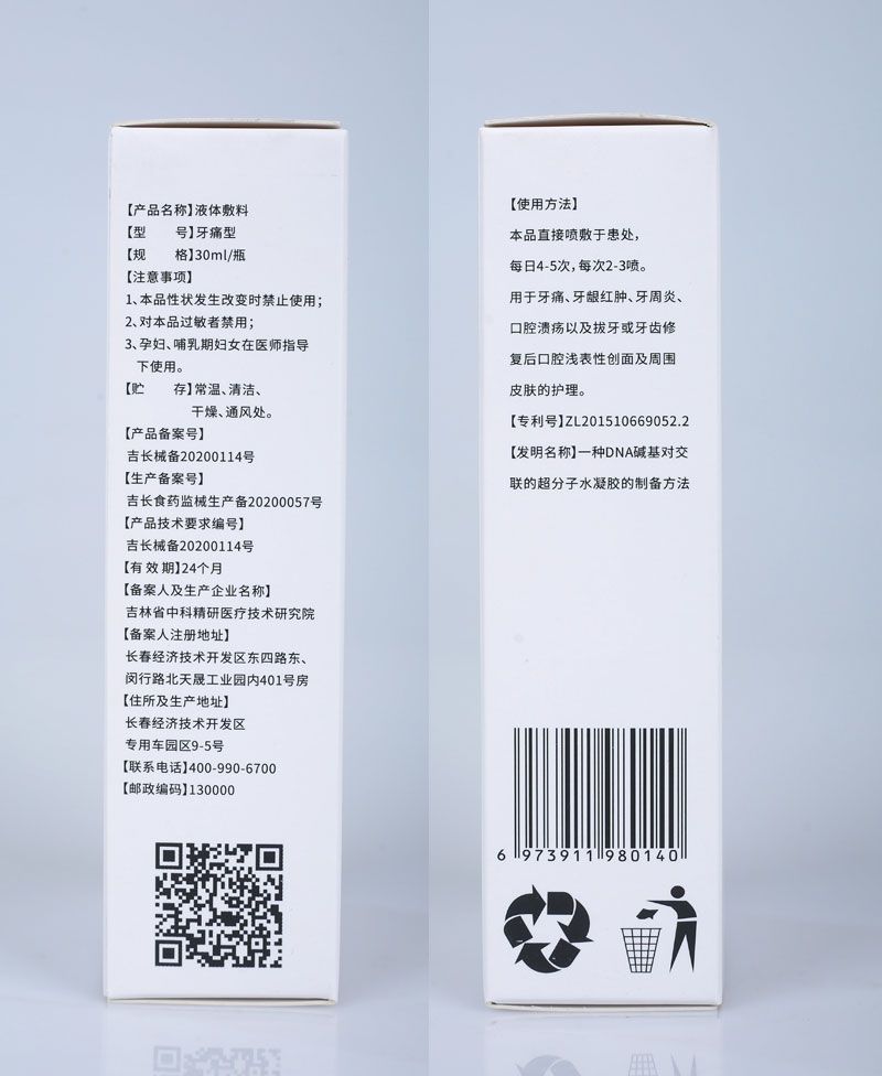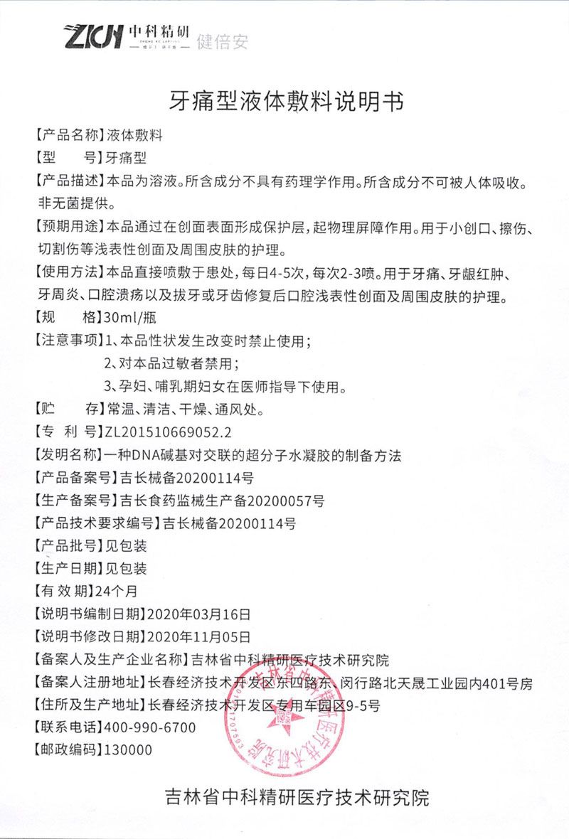 | 產(chǎn)品名稱 | 牙痛液體敷料 |