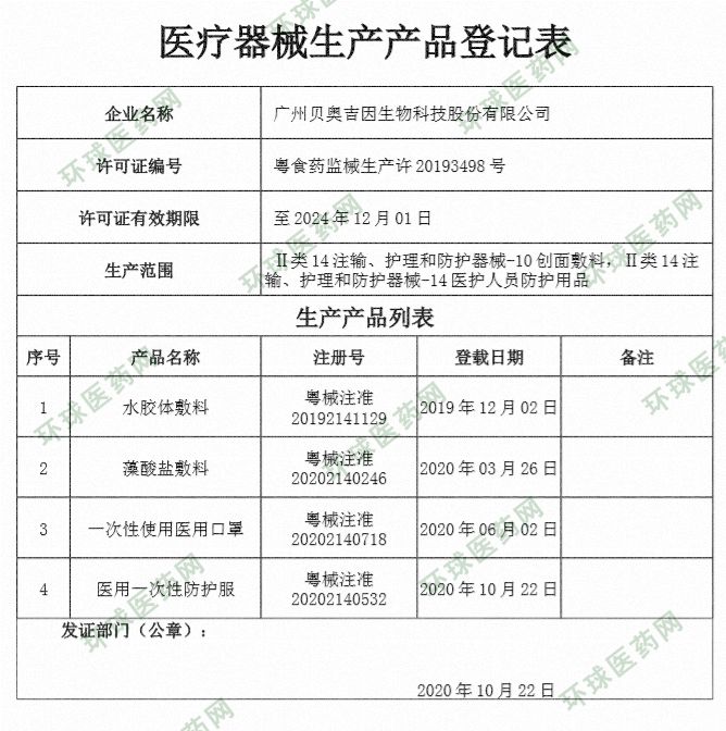 生產(chǎn)企業(yè): 廣州貝奧吉因生物科技股份有限公司