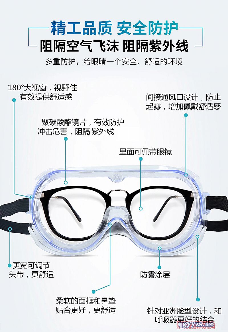 | 產(chǎn)品賣點(diǎn) | 精工品質(zhì)**防護(hù) 阻隔空氣飛沫阻隔紫外線 多重防護(hù),給眼睛一個(gè)**、舒適的環(huán)境 180°大視窗,視野佳,有效提供舒適感 聚碳酸酯鏡片,有效防護(hù)沖擊危害,阻隔紫外線 間接通風(fēng)口設(shè)計(jì),防止起霧,增加佩戴舒適感 更寬可調(diào)節(jié)頭帶,更舒適 柔軟的面框和鼻墊貼合更好,更舒適 針對(duì)亞洲臉型設(shè)計(jì),和呼吸器更好的結(jié)合 |