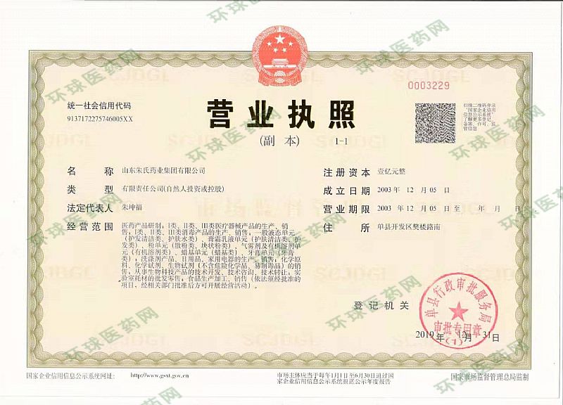 生產(chǎn)企業(yè): 山東朱氏藥業(yè)集團有限公司