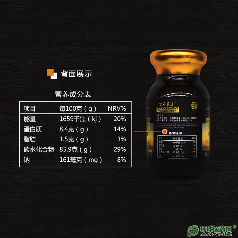 | 主要成分 | 乳糖、秘魯瑪咖粉、微晶纖維素、黑松露粉(塊菌)、菠菜粉、酵母復(fù)合粉、山梨糖醇、瓜拉納香精(含瓜拉納提取物)、硬脂酸鎂、三氯蔗糖 |