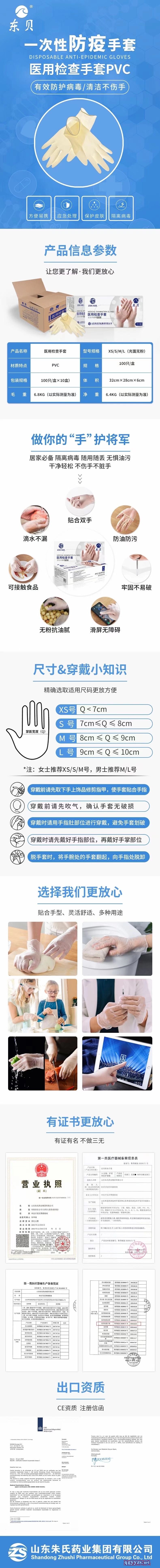 | 產品名稱 | 朱氏藥業(yè)一次性PVC醫(yī)用檢查手套 |
