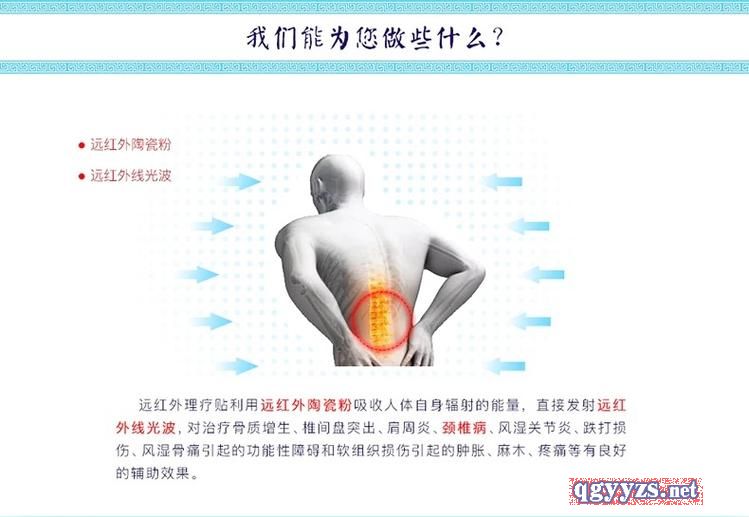 | 產(chǎn)品用途 | 用于QL-A頸椎病、QL-B肩周炎、QL-C骨質(zhì)增生、QL-D腰椎間盤(pán)突出、QL-E風(fēng)濕性關(guān)節(jié)炎、QL-F跌打損傷的輔助治療 |