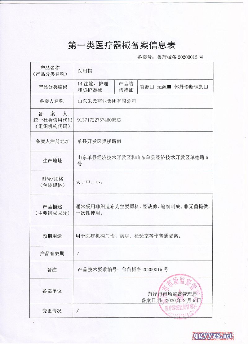 批準(zhǔn)文號(hào): 魯菏械備20200015號(hào) 【驗(yàn)證真?zhèn)?/a>】