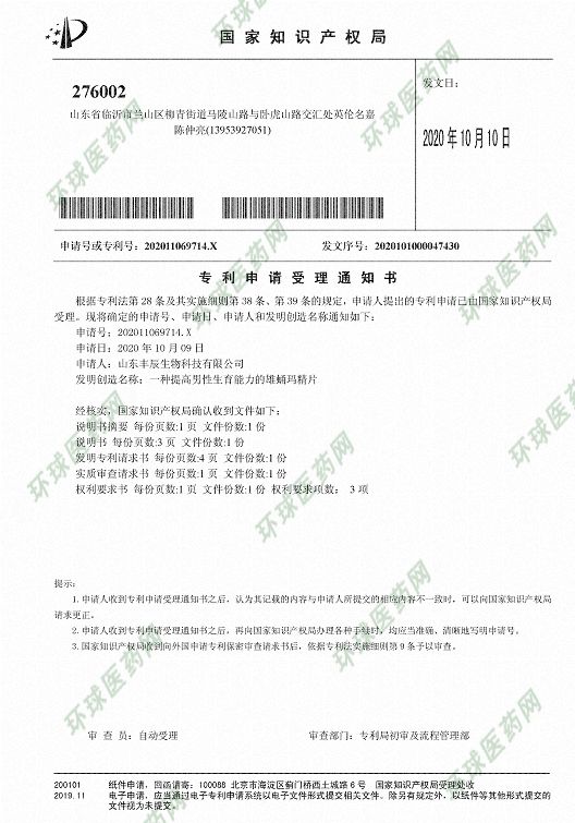 | 補充說明 | 豐辰孕寶說明書: 【產(chǎn)品名稱】豐辰育子片 【產(chǎn)品類型】壓片糖果 【配料表】山梨糖醇、瑪咖、杜仲雄花、黃精、蛹蟲草粉、硬脂酸鎂 【建議使用方法】每日兩次,每次3片,溫水吞食 【產(chǎn)品規(guī)格】0.5克/片*60片 【生產(chǎn)批號】見打碼 【生產(chǎn)日期】見打碼 【保質(zhì)期】24個月 【貯藏方法】置陰涼、干燥、通風處保存 【注意事項】瑪咖≤25克/天;杜仲雄花≤6克/天,每日食用量不宜超過3克 【不適宜人群】嬰幼兒、兒童、哺乳期婦女、孕婦、食用真菌過敏者 【執(zhí)行標準號】SB/T 10347 【食品生產(chǎn)許可證編號】SC10637150100089 【委托生產(chǎn)企業(yè)】山東豐辰生物科技有限公司 【委托生產(chǎn)企業(yè)地址】山東省臨沂市蘭山區(qū)柳青街道馬陵山路與臥虎山路交匯英倫名嘉10號樓104號 【受委托生產(chǎn)企業(yè)】聊城美之健醫(yī)藥科技有限公司 【受委托生產(chǎn)企業(yè)地址】聊城高新技術(shù)開發(fā)區(qū)天翔科技園2號樓 【產(chǎn)地】聊城 【全國服務熱線】400-8278837 【產(chǎn)品名稱】豐辰孕子片 【產(chǎn)品類型】壓片糖果 【配料表】山梨糖醇、碳酸鈣、牡蠣肽、刀豆、白扁豆花、白砂糖、硬脂酸鎂 【建議使用方法】每日兩次,每次3片,溫水吞食 【產(chǎn)品規(guī)格】0.5克/片*60片 【生產(chǎn)批號】見打碼 【生產(chǎn)日期】見打碼 【保質(zhì)期】24個月 【貯藏方法】置陰涼、干燥、通風處保存 【注意事項】每日食用量不宜超過3克 【執(zhí)行標準號】SB/T 10347 【食品生產(chǎn)許可證編號】SC10637150100089 【委托生產(chǎn)企業(yè)】山東豐辰生物科技有限公司 【委托生產(chǎn)企業(yè)地址】山東省臨沂市蘭山區(qū)柳青街道馬陵山路與臥虎山路交匯 |