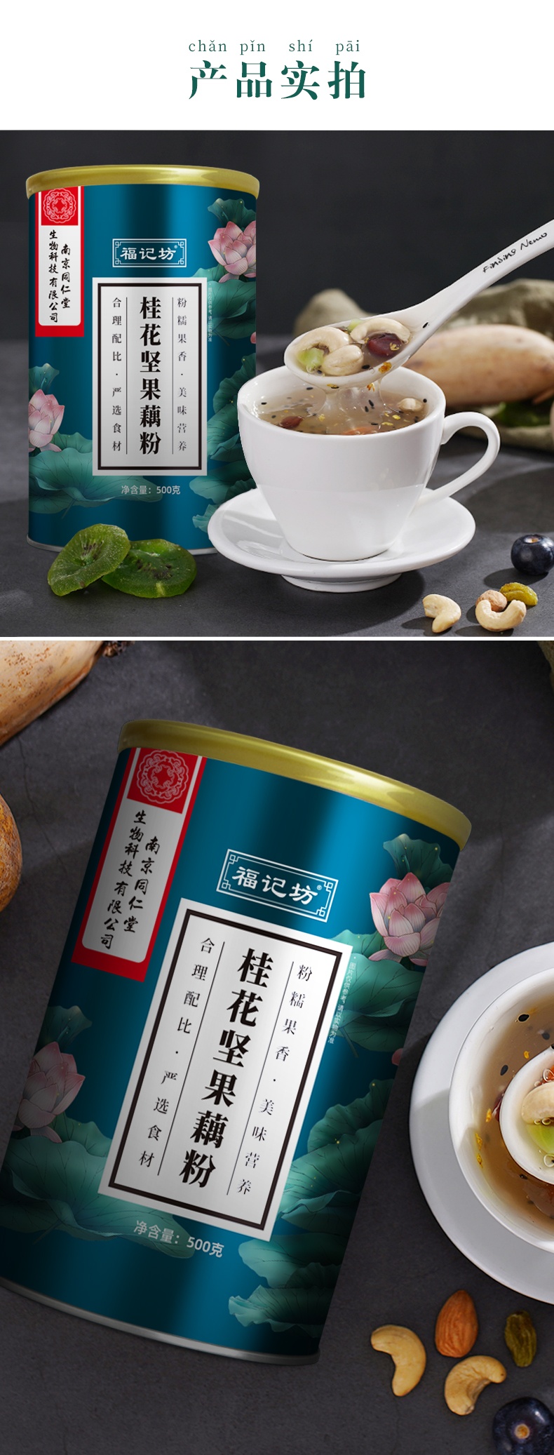 | 主要成分 | 藕粉、葡萄干、瓜子仁、山楂片、巴旦木、黑芝麻、凍干紫薯丁、桂花、冰糖 |