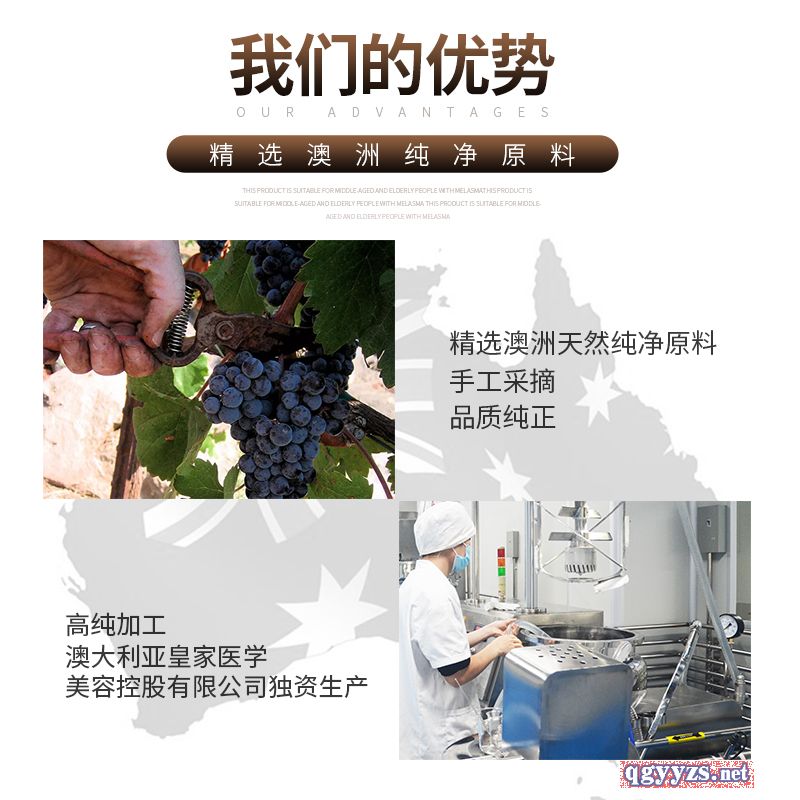 | 產(chǎn)品賣點(diǎn) | 源自“純凈”的澳大利亞 蘊(yùn)含葡萄籽精華,清爽膚感,質(zhì)地溫和,增加肌膚彈力,令肌膚緊致絲掌滑,恢復(fù)彈透亮肌膚,綻放年輕光彩 |