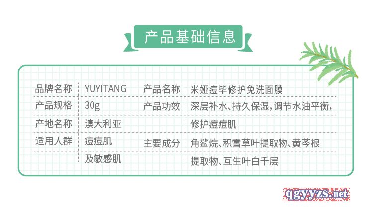 | 產(chǎn)品名稱 | YUYITANG痘畢修護(hù)免洗面膜 |