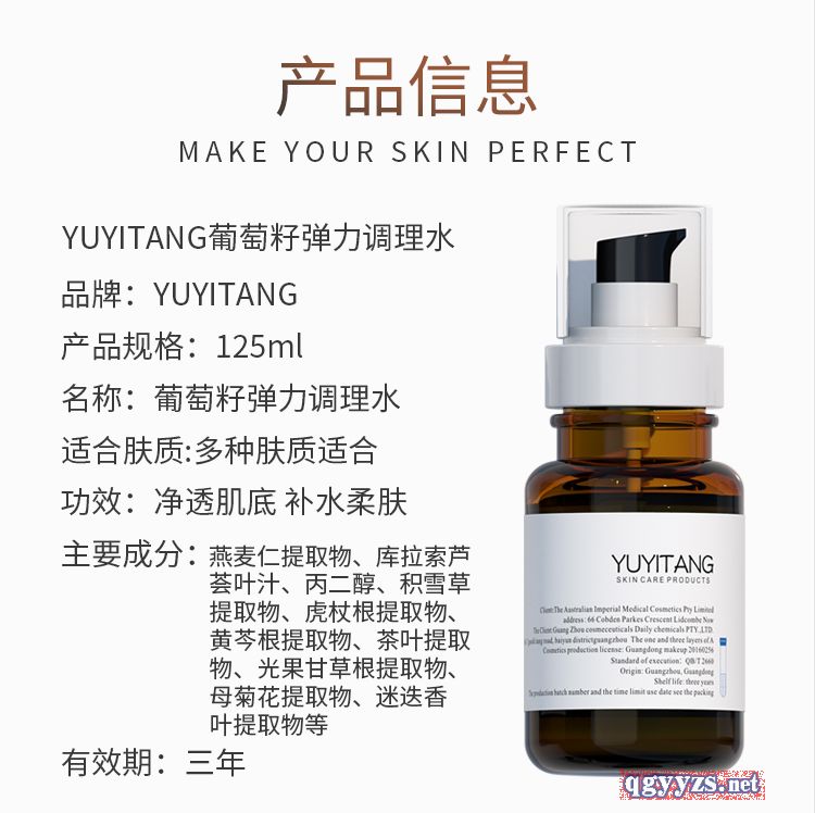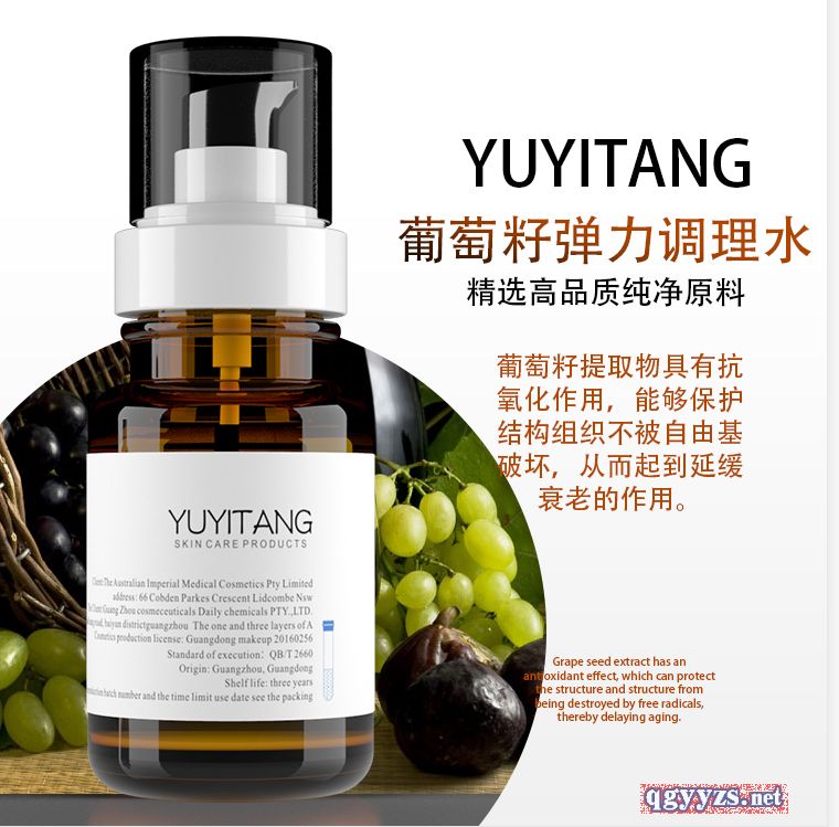 | 產(chǎn)品名稱 | YUYITANG葡萄籽彈力調(diào)理水 |