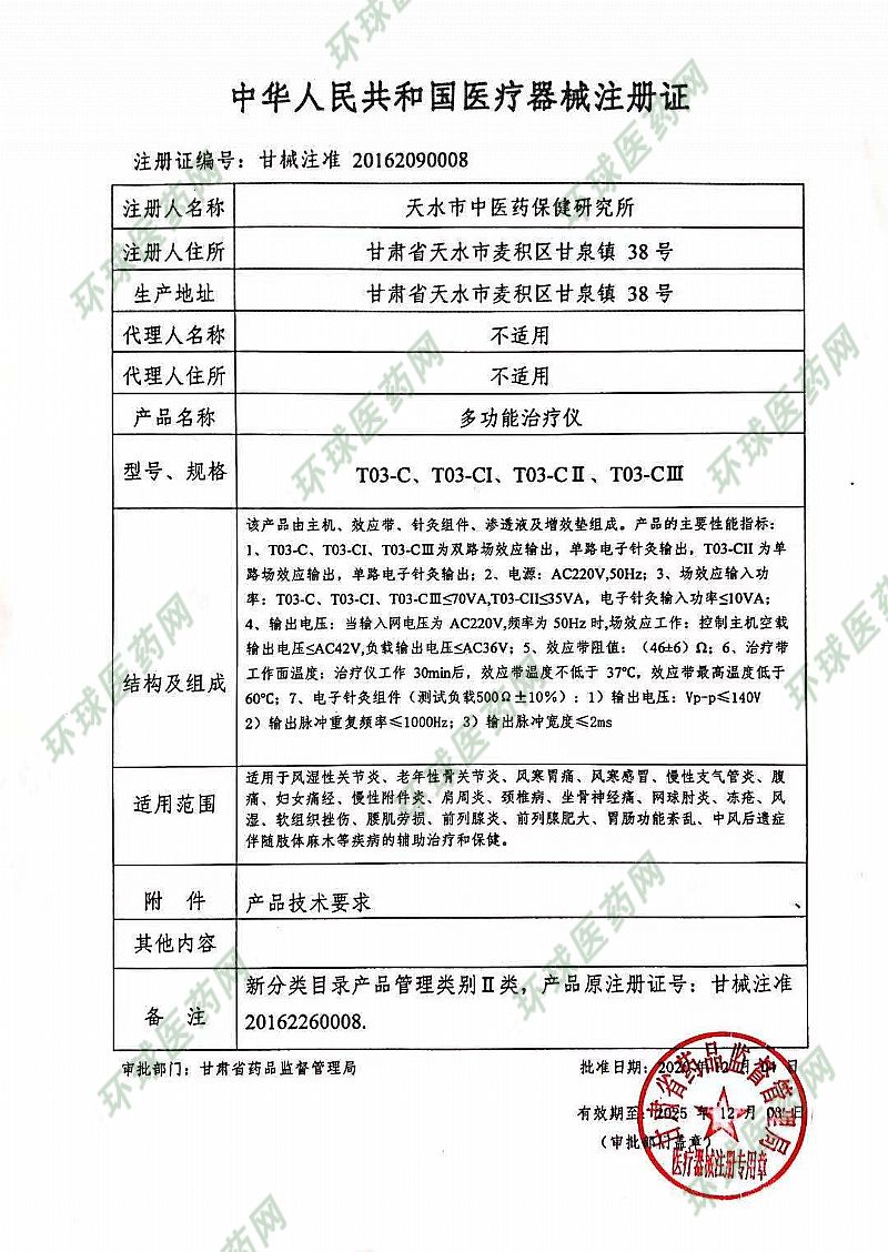批準(zhǔn)文號(hào): 甘械注準(zhǔn)20162090008 【驗(yàn)證真?zhèn)?/a>】
