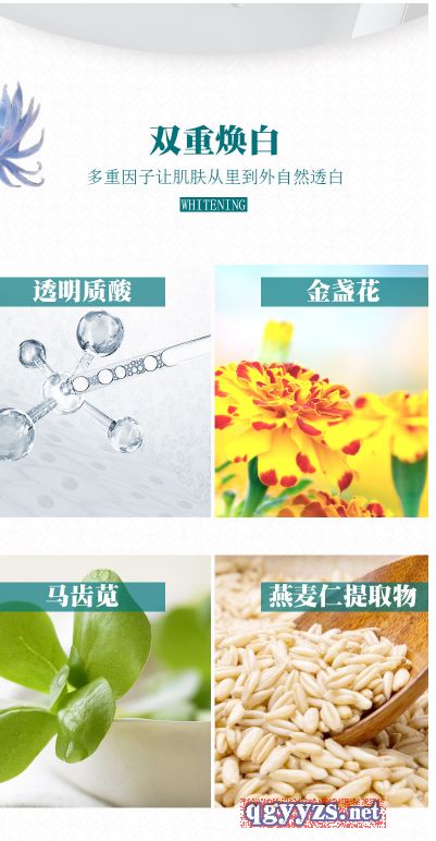 | 產(chǎn)品賣點 | 蘊含植物熊果苷精華、珍珠粉和寡肽等亮膚修護成分,質(zhì)地水光潤滑,有助于改善肌膚水油平衡,溫和祛痘,素顏修護,同時補充肌膚水分,緊致肌膚,對肌膚暗淡粗糙皮膚受損等情況有改善作用 |