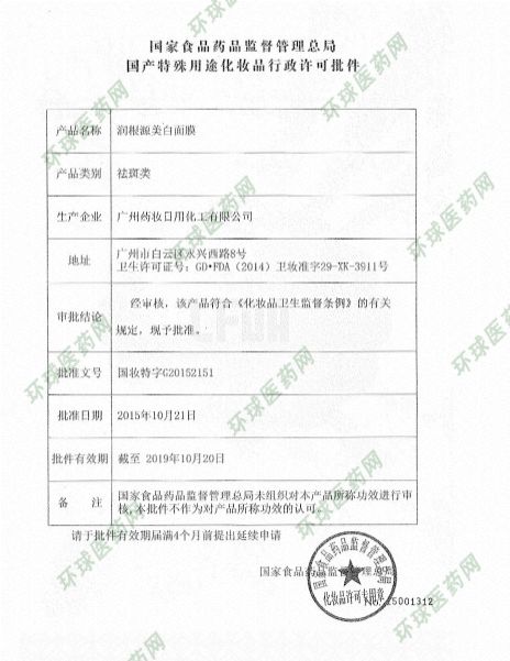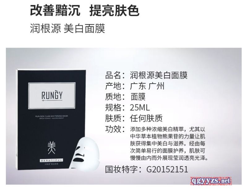 | 產(chǎn)品名稱 | 潤根源美白面膜 |