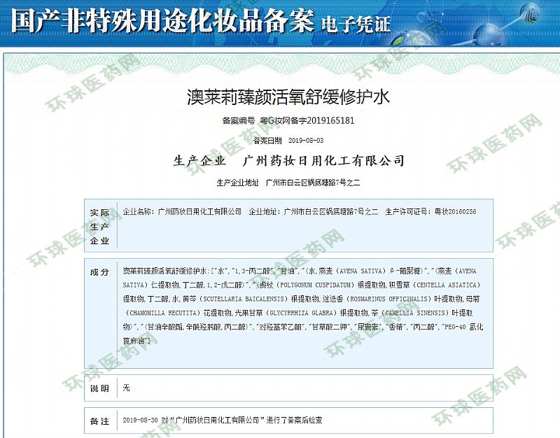 批準(zhǔn)文號(hào): 粵G妝網(wǎng)備字2019165181 【驗(yàn)證真?zhèn)?/a>】