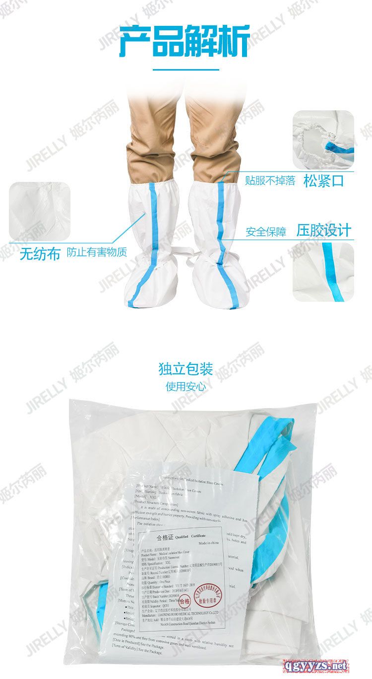 | 其它說(shuō)明 | 使用優(yōu)質(zhì)無(wú)紡布或者優(yōu)質(zhì)PP+PE覆膜,淋膜材質(zhì)。使用中耐磨防水,透氣,隔離效果好,高筒鞋套不下滑。 |
