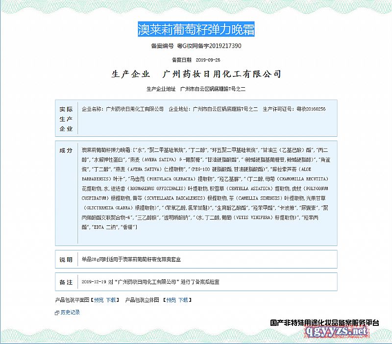 批準(zhǔn)文號(hào): 粵G妝網(wǎng)備字2019217390 【驗(yàn)證真?zhèn)?/a>】