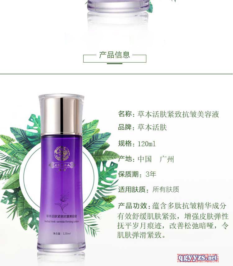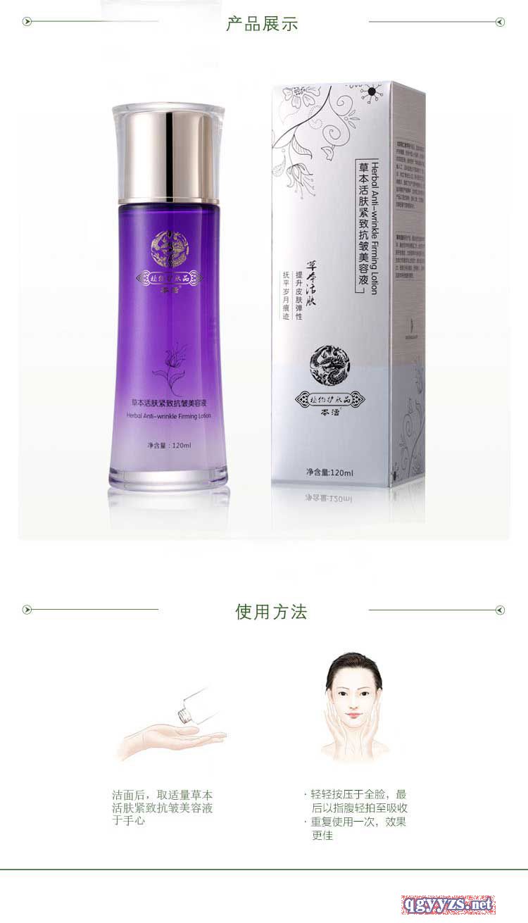 產(chǎn)品名稱: 本活草本活膚緊致抗皺美容液