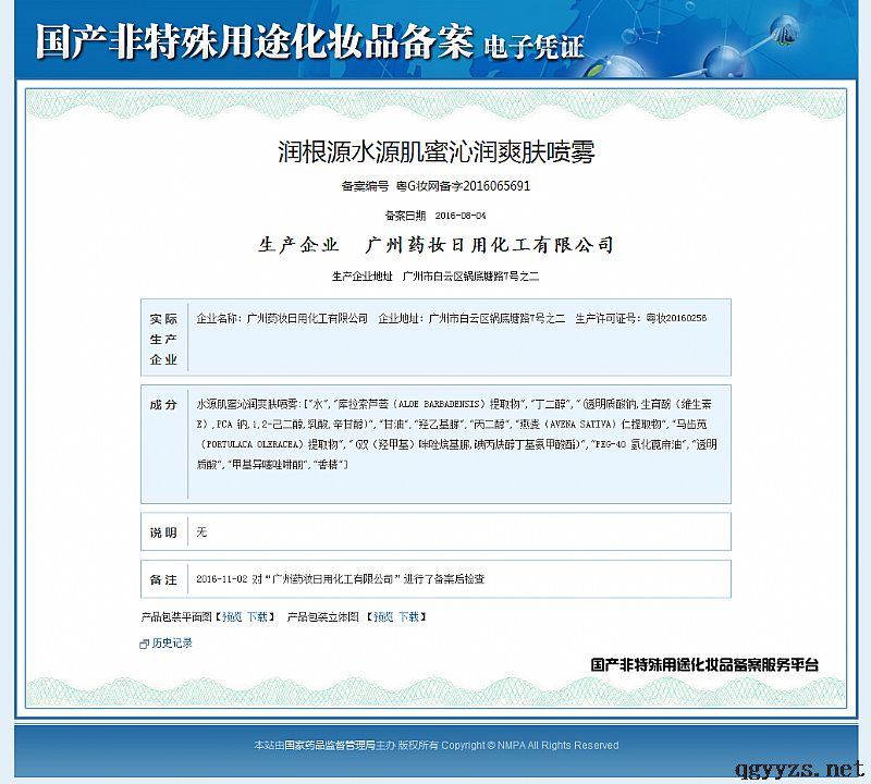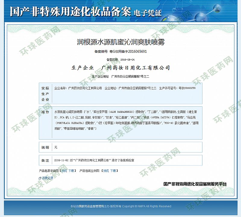 批準(zhǔn)文號(hào): 粵G妝網(wǎng)備字2016065691 【驗(yàn)證真?zhèn)?/a>】