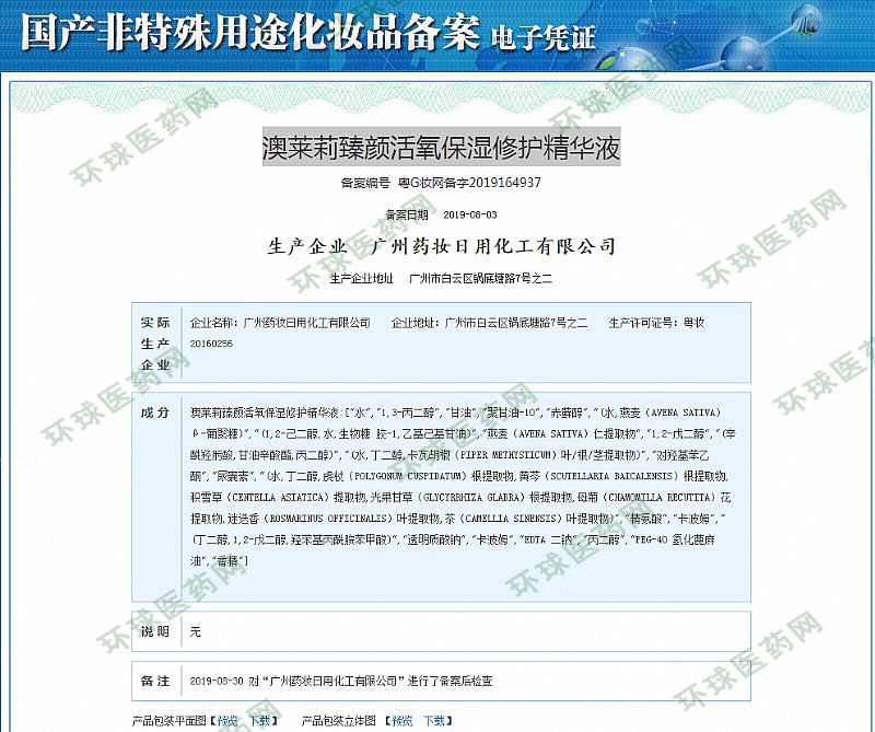 批準(zhǔn)文號(hào): 粵G妝網(wǎng)備字2019164937 【驗(yàn)證真?zhèn)?/a>】