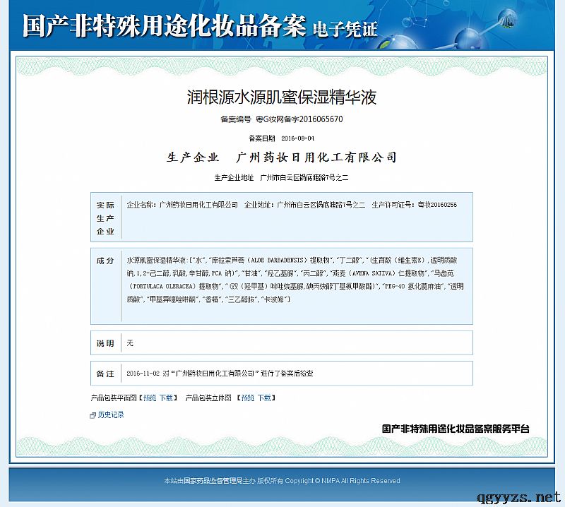 批準(zhǔn)文號(hào): 粵G妝網(wǎng)備字2016065670 【驗(yàn)證真?zhèn)?/a>】