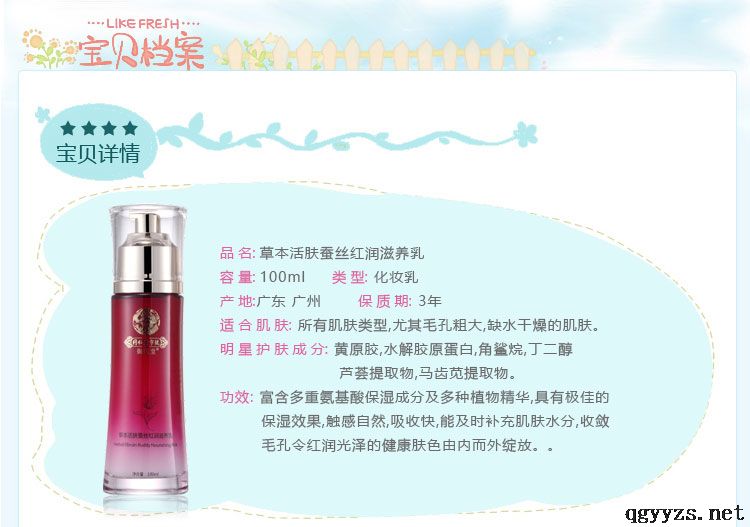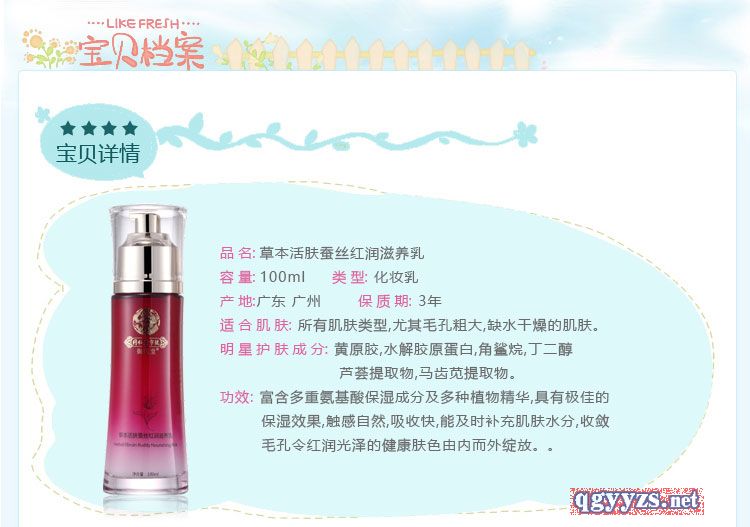 產(chǎn)品名稱: 本活草本活膚蠶絲紅潤滋養(yǎng)乳