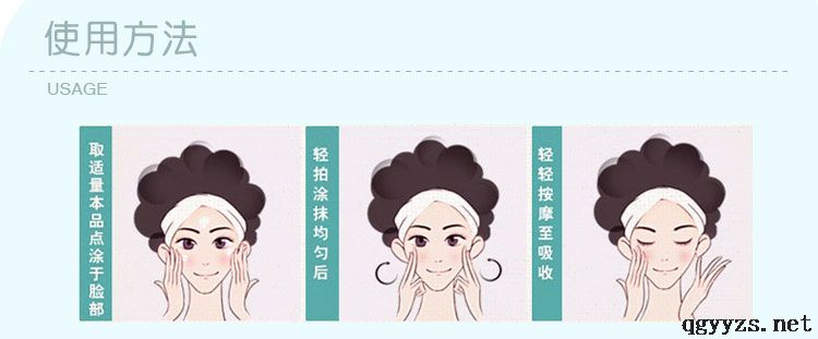 | 使用方法 | 潔面后,用同系列調(diào)理水和精華,在取出適量的乳液用指腹的力量,哪里最干就先涂抹哪里,先涂抹兩頰、嘴角兩側(cè)、上下顎,這些部位涂完之后再涂全臉,讓干燥的部位得到雙重滋潤。涂抹完后,從臉的中央部位向外做輕輕的按摩推開,直至被皮膚完全吸收。 |