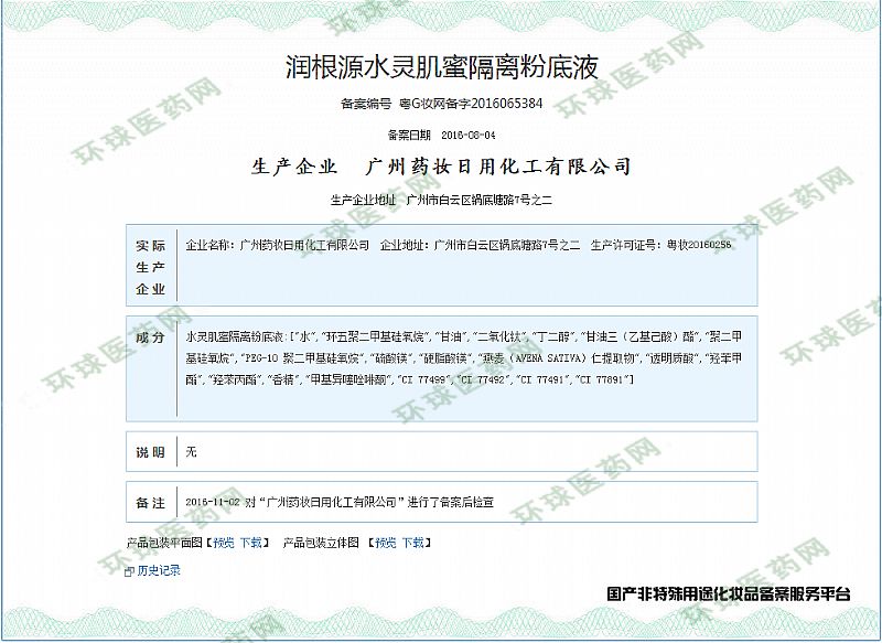 批準(zhǔn)文號: 粵G妝網(wǎng)備字2016065384 【驗證真?zhèn)?/a>】