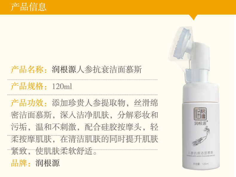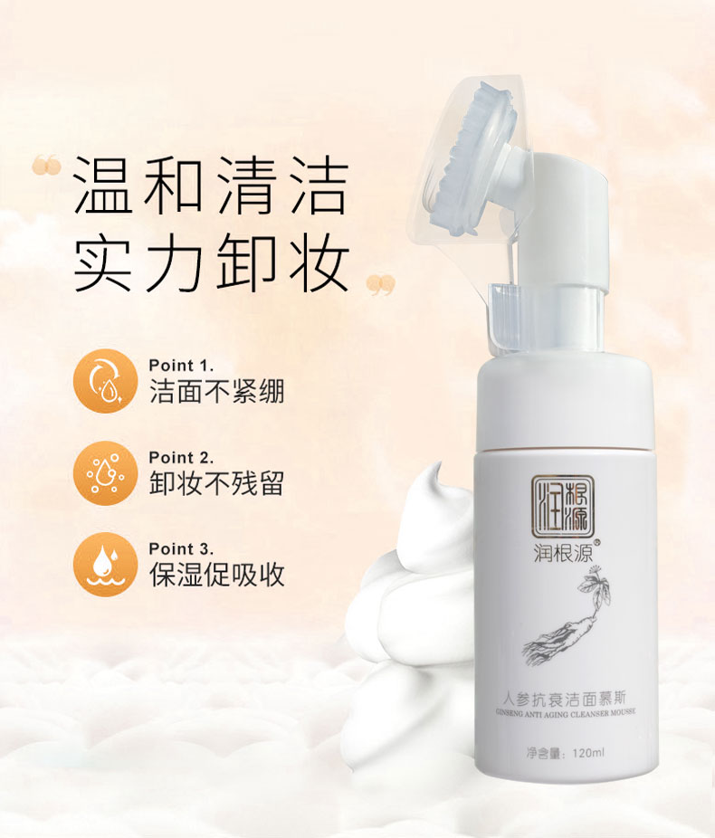 | 產(chǎn)品名稱 | 潤(rùn)根源人參抗衰潔面慕斯 |