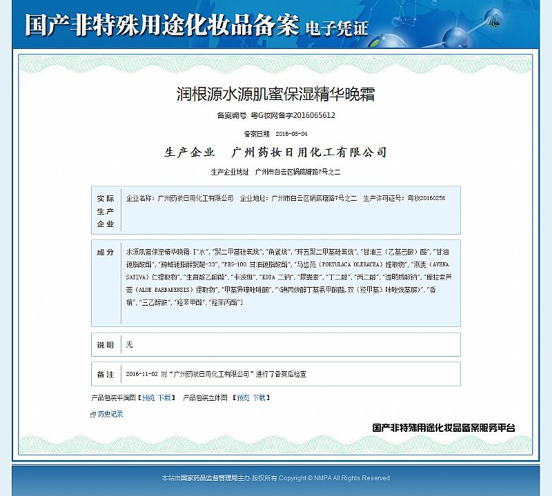 批準(zhǔn)文號: 粵G妝網(wǎng)備字2016065612 【驗(yàn)證真?zhèn)?/a>】