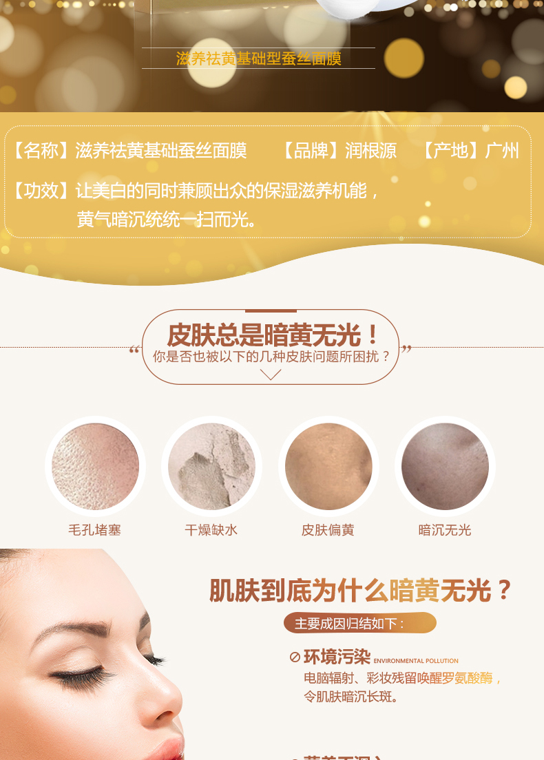 潤根源美白面膜滋養(yǎng)祛黃蠶絲面膜