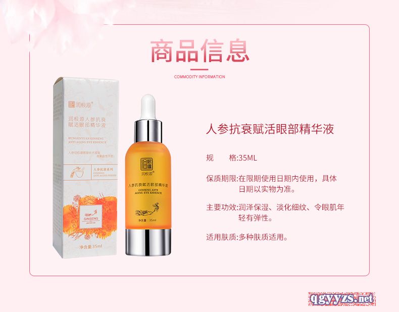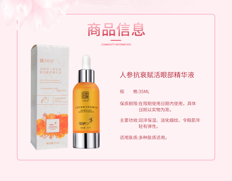 | 產(chǎn)品名稱 | 潤根源人參抗衰賦活眼部精華液 |