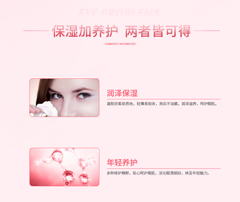 | 產(chǎn)品賣點(diǎn) | 爽滑觸感滋潤肌膚同時(shí)補(bǔ)充肌膚豐沛水分,舒緩細(xì)致眼部周圍肌膚,柔化角質(zhì),提拉緊致肌膚,美潤補(bǔ)水,緊致肌膚,輕撫間透現(xiàn)彈滑水潤美感。 |
