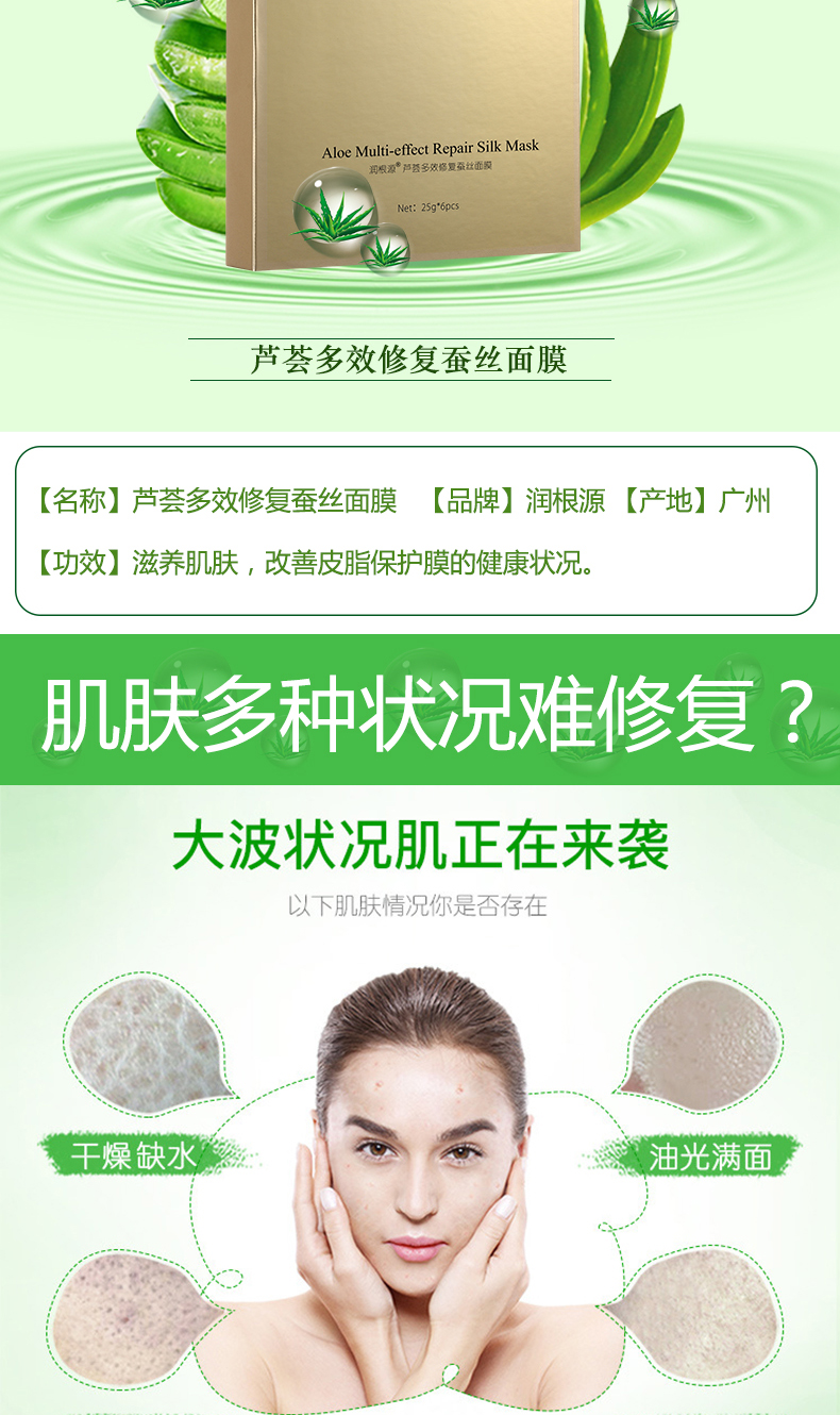 潤根源蘆薈多效修護(hù)補(bǔ)水保濕蠶絲面膜