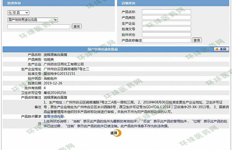 生產(chǎn)企業(yè): 廣州藥妝日用化工有限公司