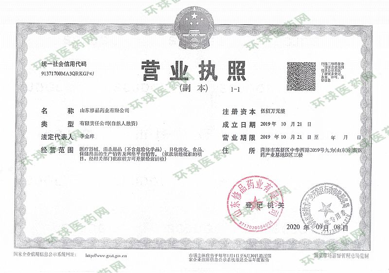 生產(chǎn)企業(yè): 山東修品藥業(yè)有限公司